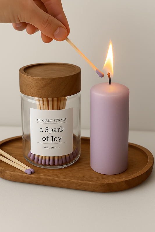 Leuk glazen potje met acacia houten dop. Er zitten 35 gekleurde lucifers in.